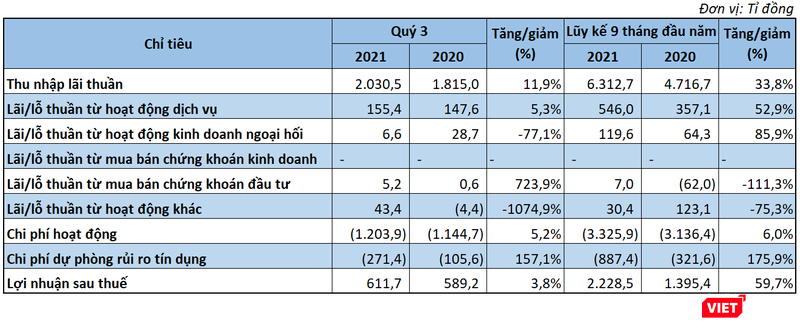 Lũy kế 9 tháng đầu năm, LPB ghi nhận lợi nhuận sau thuế đạt 2.228,5 tỉ đồng, tăng 59,7% so với cùng kỳ. Riêng quý 3/2021, nhà băng này báo lãi sau thuế 611,7 tỉ đồng, tăng 3,8% so với cùng kỳ năm 2020.