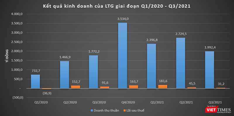 Trong kỳ, chi phí hoạt động và chi phí tài chính của LTG đều tăng nên lợi nhuận sau thuế quý 3/2021 chỉ đạt 31,2 tỉ đồng, giảm 66% so với cùng kỳ năm 2020.