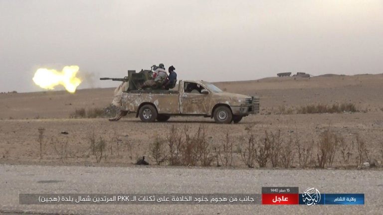 Trong một diễn biến bất lợi cho đồng minh người Kurd ở Deir Ezzor, ngày 24.10.2018, theo trang Amaq, các tay súng IS tấn công 8 trận địa phòng ngự của Lực lượng Dân chủ Syria (SDF) phía bắc thị trấn Hajin trên vùng nông thôn phía đông nam Deir Ezzor.