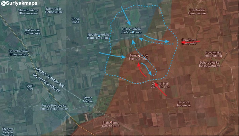 Quân đội Ukraine tiếp tục mở rộng bàn đạp đầu cầu trên khu vực Andreevsky, tổ chức tấn công đẩy lùi quân đội Nga khỏi các làng Belogorka, Kostromka , Bruskinsky và Karlo-Marksovsky. Quân đội Ukraine cũng chuyển đến làng Bereznegovatoe các thiết bị công binh để triển khai cầu vượt mới qua sông Ingulets. Khoảng 30 thiết bị kỹ thuật được chuyển đến bờ bắc dòng sông.