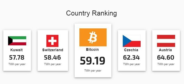 Một công cụ trực tuyến mới của Đại học Cambridge chỉ ra rằng, Bitcoin sử dụng lượng điện năng ngang bằng với cả đất nước Thụy Sĩ. Công cụ này giúp ta có thể thấy được lượng điện năng sử dụng bởi mạng lưới tiền mã hóa so với các đối tượng khác.