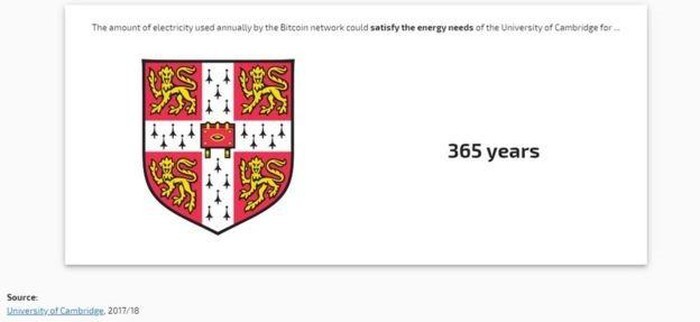 Lượng điện năng sử dụng bởi mạng lưới Bitcoin mỗi năm có thể cung cấp đủ năng lượng cho Đại học Cambridge vận hành trong 365 năm