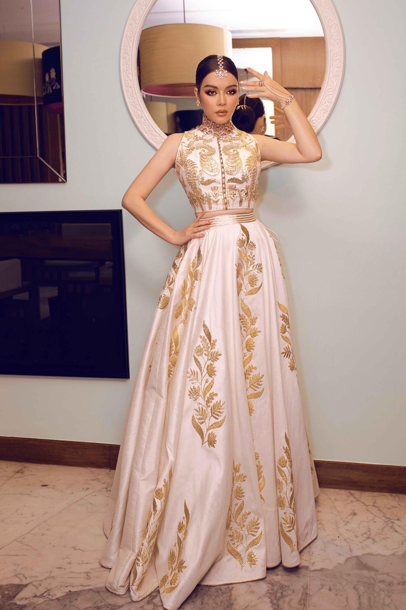 Lý Nhã Kỳ xuất hiện trong ngày đầu tiên với chủ đề trang phục truyền thống Ấn Độ. Phần phục trang được đích thân ngài tỉ phú cho nhà thiết kế Ấn Độ đặt may riêng theo số đo của Lý Nhã Kỳ. Chiếc đầm được làm cầu kỳ và may thủ công trong 2 tháng với các đường chỉ vàng được đính kết tỉ mỉ, làm tăng thêm nét sang trọng, cổ điển vốn có của Lý Nhã Kỳ.