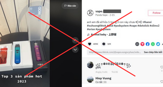 Hướng dẫn sử dụng, rao bán thuốc lá điện tử tràn lan trên TikTok, Facebook