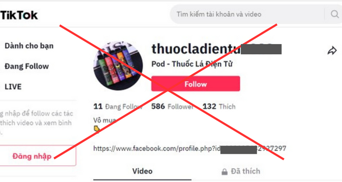 Để có thể dễ dàng bán cho người mua, nhiều shop còn tạo tài khoản trên TikTok để liên kết sang Facebook cho dễ "show hàng". Hầu hết các tài khoản trên TikTok này không đăng tải clip, hoặc chỉ đăng tải 1 clip để duy trì tài khoản. Phương tiện chính của họ vẫn là Facebook. Chẳng hạn như tài khoản thuocladientu.... hoặc tài khoản thuocladientu... đều có link sang Facebook.