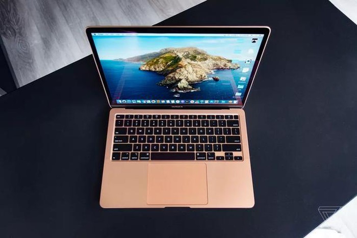 Cấu hình của sản phẩm bao gồm chip Intel Core i3 thế hệ thứ 10, xung nhịp 1,1 GHz, RAM 8 GB, SSD 256 GB. Model này chuyển sang bàn phím cắt kéo (Magic Keyboard) tương tự MacBook Pro 16 inch. Bàn phím mới dày hơn so với bàn phím cánh bướm (Butterfly Keyboard), hành trình phím 1 mm và cụm phím điều hướng dạng chữ T truyền thống cho cảm giác gõ tốt, ít bám bụi bẩn hơn. Ảnh: The Verge.