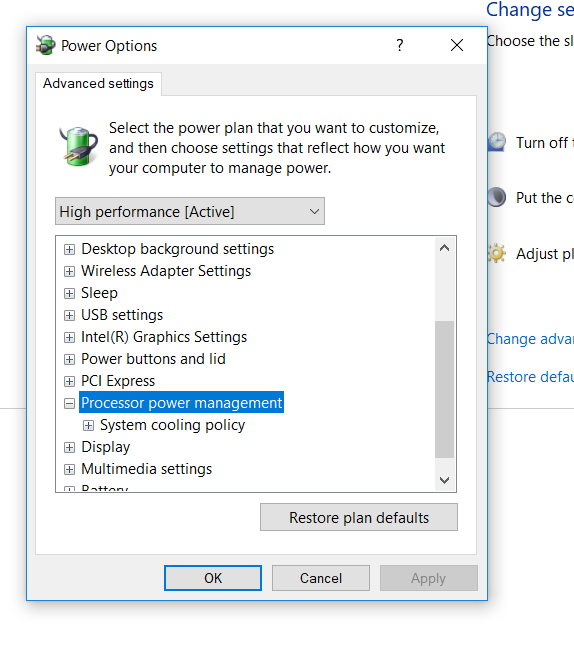 Trong bảng này, trong danh sách xổ ra tương ứng với profile đang kích hoạt (active), bấm vào ở phần Processor power management sẽ có 3 trạng thái của bộ xử lý. Lúc này, cần quan tâm tới phần Maximum processor state (Trạng thái xử lý tối đa), thiết lập ở mức 70-80% tương ứng với lúc dùng pin và lúc cắm sạc cho bộ xử lý Core i3 tầm trung, nghĩa là điều chỉnh xung nhịp (cũng như năng lực xử lý) ở mức 70- 80% so với công suất tối đa mặc định của máy.