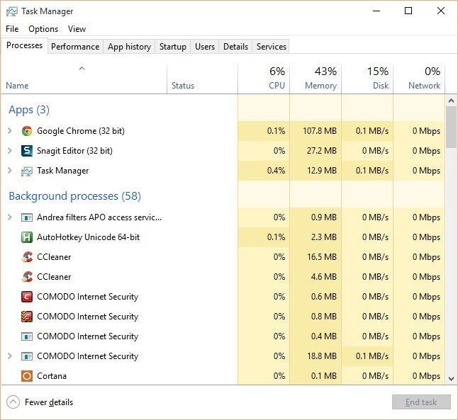Nếu các vấn đề phần cứng, khách quan đã được đáp ứng tốt nhưng laptop vẫn bị nóng thì bạn hãy nghĩ đến vấn đề phần mềm. Đôi khi do 2 phần mềm xung đột nhau, phần mềm bị lỗi, treo, ngốn rất nhiều tài nguyên khiến cho laptop nóng lên. Bạn hãy mở Task Manager, kiểm tra một lượt, phần mềm nào đang ngốn quá nhiều RAM, CPU thì tắt hoặc ít nhất là khởi động lại nó xem sao.
