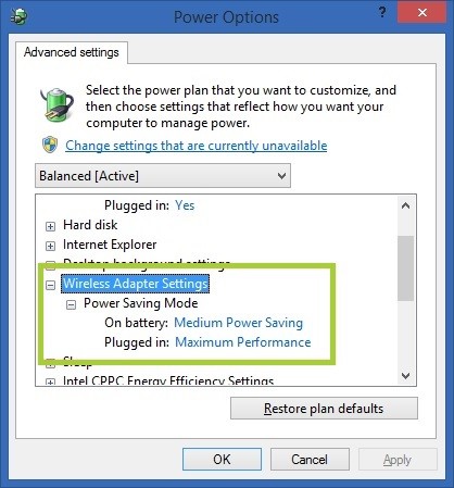 Graphics Power Plan: Maximum Battery life or the equivalent, tùy chọn vào card đồ họa máy tính sử dụng