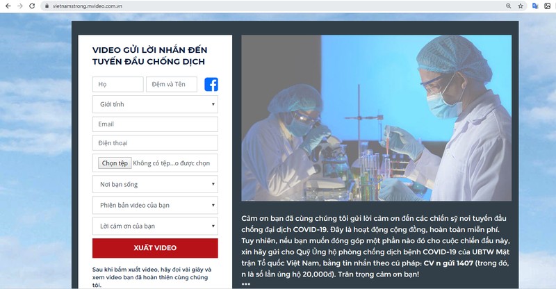 Đây là công cụ video cá nhân hóa (mVideo) lần đầu tiên có mặt tại Việt Nam, được phân phối bởi công ty Maycom Corporation. Công cụ này sử dụng trí tuệ nhân tạo và dữ liệu lớn, khi kết hợp với những dữ liệu mà người dùng đưa vào như ảnh cá nhân, lời nhắn, sẽ tạo ra một video với sự xuất hiện của người dùng cùng những lời tri ân đến các chiến sĩ tuyến đầu chống dịch.