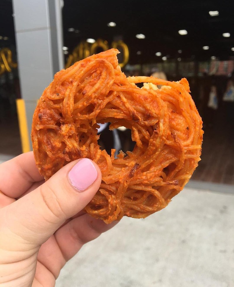 Là sản phẩm từ Pop Pasta, món ăn này được lấy cảm hứng từ một món ăn xứ Naples: spaghetti frittata, trong đó mì ống được chiên với trứng và pho mát. Spaghetti doughnut thích hợp cho những buổi dã ngoại.