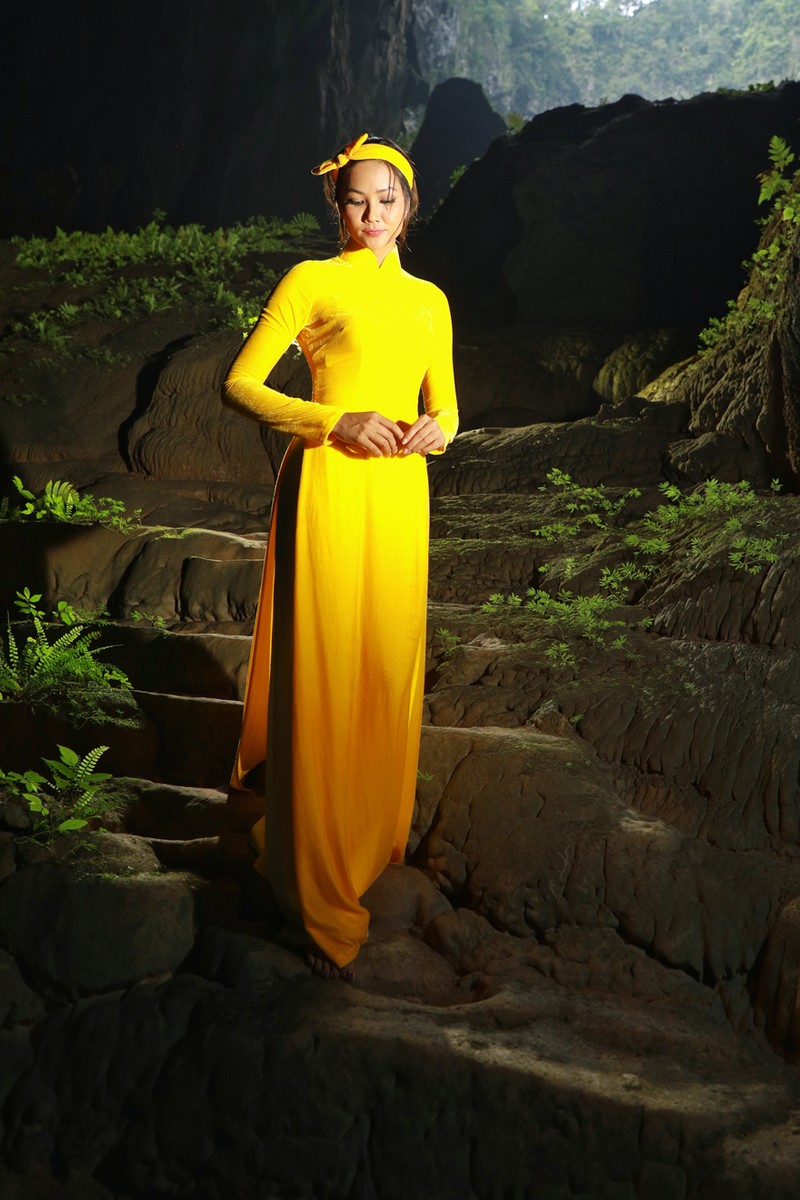 Hoa hậu H' Hen Niê trong áo dài Thuận Việt tại hang Sơn Đoòng