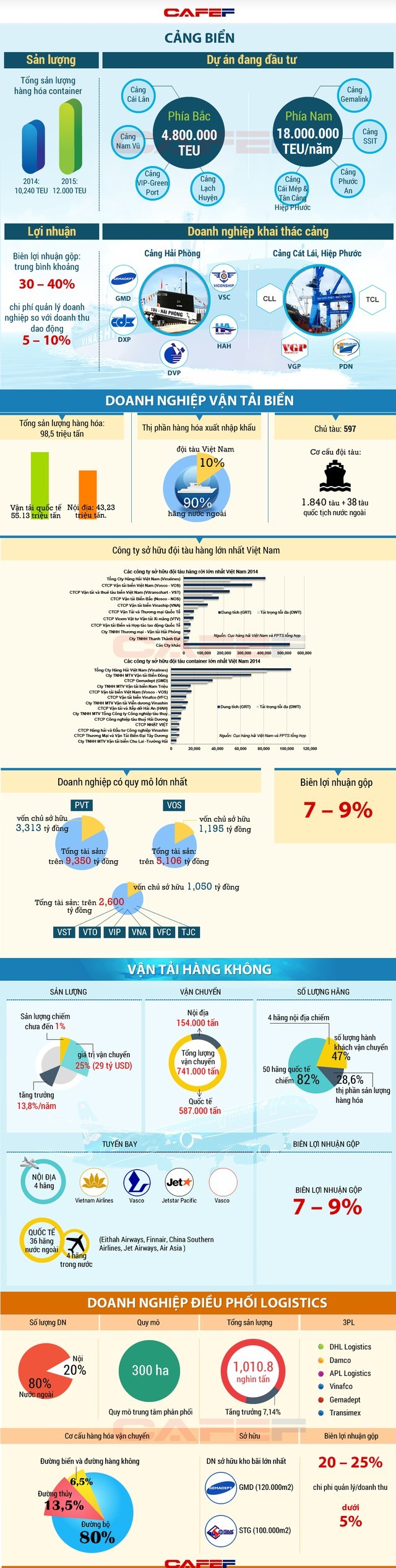 Một nghịch lý là, trong khi các doanh nghiệp nội địa chiếm số lượng lớn nhất, tới hơn 90% số doanh nghiệp, nhưng lại chiếm không quá 20% thị phần logistics cả nước. 10% số doanh nghiệp còn lại là các liên doanh hay đại diện của hãng nước ngoài nắm giữ tới 80% thị phần còn lại.