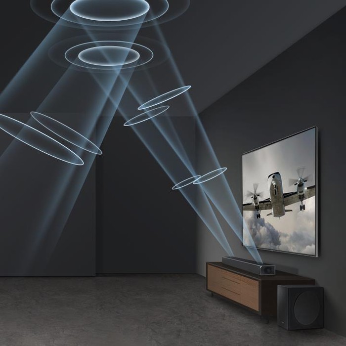 Là bộ đôi được trang bị những công nghệ “ăn ý” với nhau và được điều chỉnh bởi hệ thống thông minh, bộ đôi loa thanh Harman Kardon và TV QLED 8K cho phép bạn thưởng thức những thước phim Hollywwod, bản nhạc chất tại nhà như rạp mà không cần tinh chỉnh nhiều. Bên cạnh thanh loa chính được đặt cạnh TV, bạn chỉ cần đặt loa siêu trầm và các loa vệ tinh ở những vị trí phù hợp, hệ thống sẽ tự phân tích, tạo ra các hiệu ứng âm thanh vòm chuẩn 7.1.4 kênh nhờ hệ thống loa up-firing (loa hướng trần), side-firing (loa bên tích hợp), kết hợp công nghệ Dolby Atmos và DTS: X.