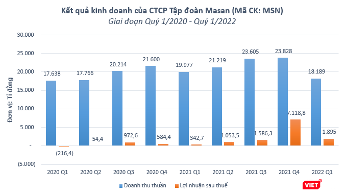 Lũy kế 3 tháng đầu năm 2022, Masan ghi nhận doanh thu thuần hợp nhất đạt 18.189 tỉ đồng, giảm 8,9% so với cùng kỳ năm trước, chủ yếu do ngừng hợp nhất mảng thức ăn chăn nuôi.