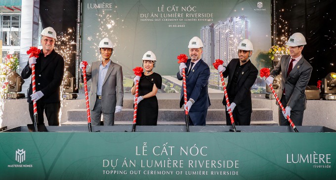 Buổi lễ cất nóc gồm sự có mặt của đại diện lãnh đạo Masterise Homes, đại diện đối tác quốc tế chiến lược Atkins, các nhà thầu chính gồm đơn vị thi công Newtecons, đơn vị giám sát xây dựng - quản lý dự án Turner và các cơ quan báo đài.