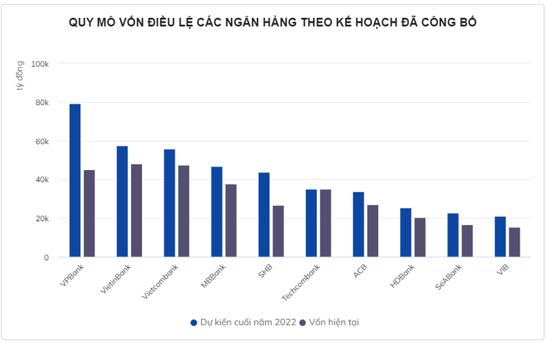 Hiện tại, từ các ngân hàng tầm trung và lớn như ACB, VIB, SeABank, TPBank, OCB đến nhóm ngân hàng cỡ nhỏ như ABBank, NamABank, BacABank, VietABank, VietBank… đều có kế hoạch tăng thêm hàng nghìn tỷ đồng vốn điều lệ năm nay.