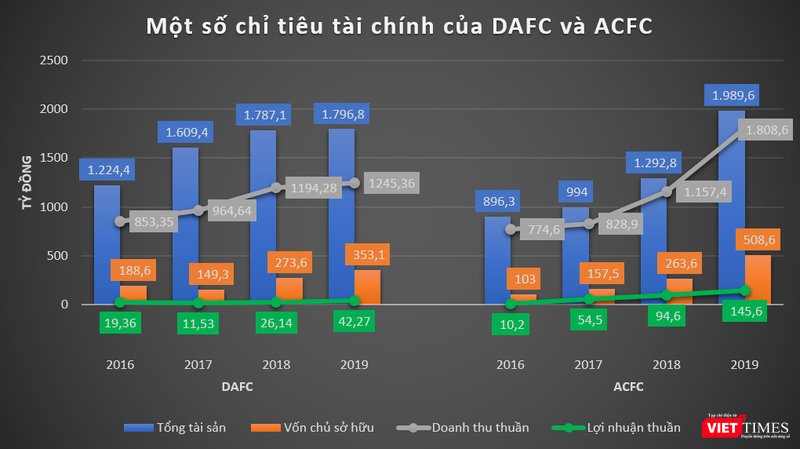 Tương tự tại ACFC, năm 2019, doanh thu thuần của DAFC đạt 1.808,6 tỷ đồng, gấp hơn 2 lần so với năm 2016; đồng thời, lợi nhuận thuần tăng hơn 14 lần từ 10,2 tỷ đồng năm 2016 lên 145,6 tỷ đồng năm 2019.