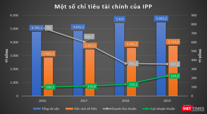 Tuy nhiên, quy mô tài sản của IPP lại ấn tượng gấp nhiều lần doanh thu mà nó ghi nhận. Theo đó, tính đến cuối năm 2019, tổng tài sản của IPP đạt 5.481 tỷ đồng, tăng gần 1% so với thời điểm đầu năm; vốn chủ sở hữu cũng tăng nhẹ lên mức 3.733,8 tỷ đồng.