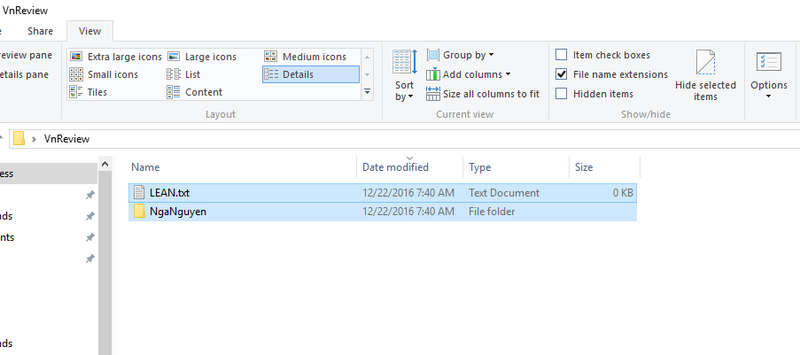 Khi file và thư mục bị ẩn, bạn sẽ không thấy chúng trên File Explorer. Để xem chúng, bạn hãy chọn thẻ Viewở trên cùng cửa sổ File Explorer. Tiếp đến, bạn tìm đến phần Show/Hide và bạn sẽ thấy một hộp kiểm có tênHidden Items. Để xem tất cả các file và thư mục ẩn, bạn hãy đánh dấu chọn vào hộp kiểm đó. Tất cả các file và thư mục có thuộc tính ẩn sẽ bị mờ đi để bạn phân biệt chúng với các file thông thường.
