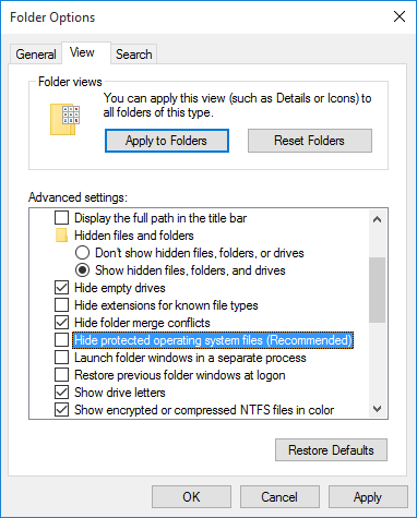 Mặc định, Windows luôn ẩn các file hệ thống khỏi người dùng cuối (end user). Microsoft làm như vậy để hạn chế việc người dùng không vô tình xóa các file hệ thống quan trọng, cần thiết cho các hoạt động của Windows. Những file dạng này hoàn toàn không hiển thị trên File Explorer. Để xem chúng, bạn phải vô hiệu hóa tùy chọn Hide protected operating system files. Đây không phải là việc không thể, nhưng nó cần người dùng có một ít kiến thức và họ cần thực hiện qua nhiều thao tác hơn.