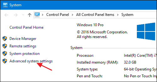 Tại cửa sổ System, bạn chọn Advanced system settings.