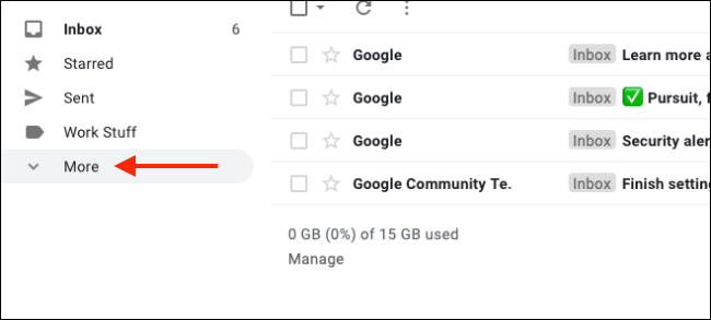 Đừng lo, khi bạn ẩn nhãn, nó sẽ không biến mất. Bạn vẫn có thể bấm nút More (Danh sách mở rộng) từ sidebar để truy cập các nhãn đã ẩn.