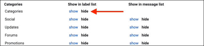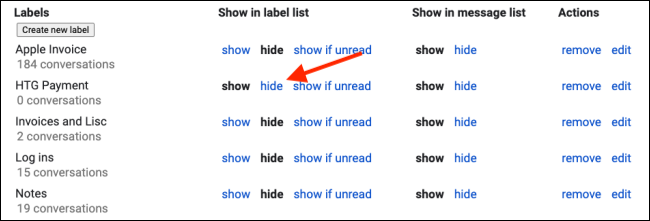 Nếu có một hay nhiều nhãn bạn ít khi sử dụng, hãy bấm nút Hide (Ẩn) hoặc Show if unread (Hiển thị nếu chưa đọc).