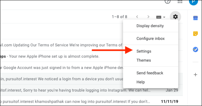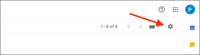 Từ trang chủ của Gmail, bạn bấm nút Settings (Cài đặt) hình bánh răng ở phía trên góc phải của thanh công cụ.
