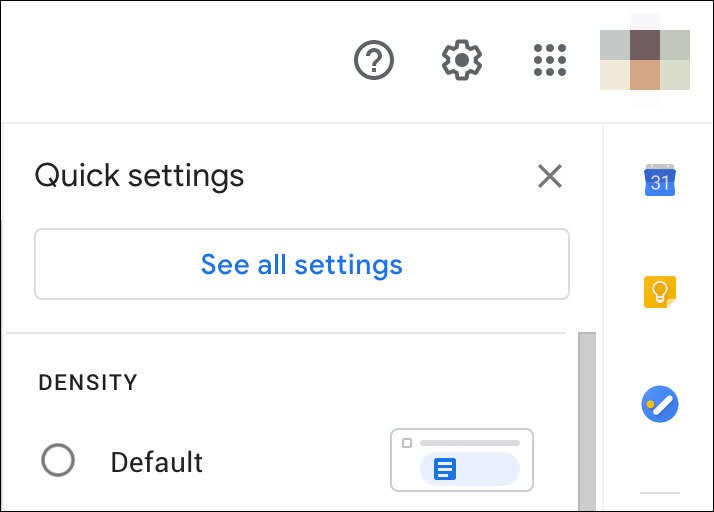 Trường hợp bạn đã được cập nhật lên Gmail giao diện mới nhất, sau khi bấm nút hình bánh răng, bạn chỉ cần bấm tiếp nút See all Settings (Xem tất cả tùy chọn cài đặt) từ khung Quick Settings (Tùy chọn cài đặt nhanh).