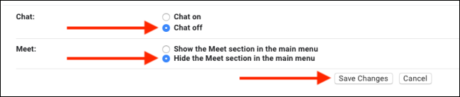 Hãy bắt đầu dọn dẹp sidebar bằng cách tắt phần Hangouts Chat và Google Meet. Hai phần này làm phần dưới của sidebar trông rất rối ren.
