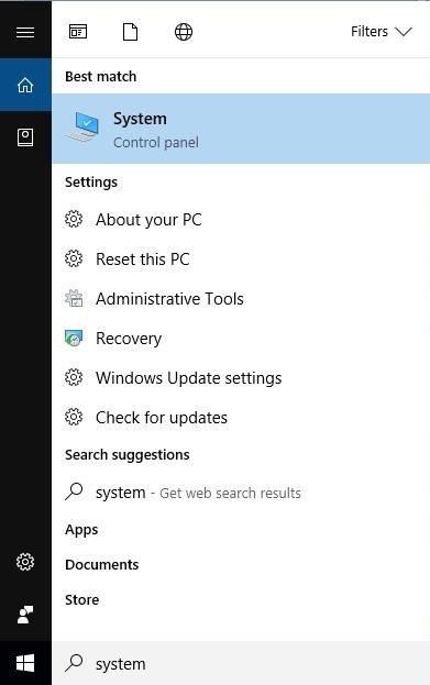 Đơn giản hơn, nếu đang sử dụng Windows 10, bạn chỉ việc gõ từ khóa “System” vào thanh tìm kiếm của Cortana và nhấn Enter.