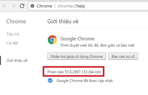 Để kiểm tra xem phiên bản Chrome mình đang sử dụng là 32-bit hay 64-bit, từ cửa sổ trình duyệt Chrome, bạn nhấn vào nút menu tùy chọn, sau đó chọn “Trợ giúp” -> “Giới thiệu về Google Chrome” từ menu hiện ra. Một tab mới được mở và sẽ hiển thị chi tiết phiên bản Chrome đang sử dụng là 32-bit hay 64-bit.
