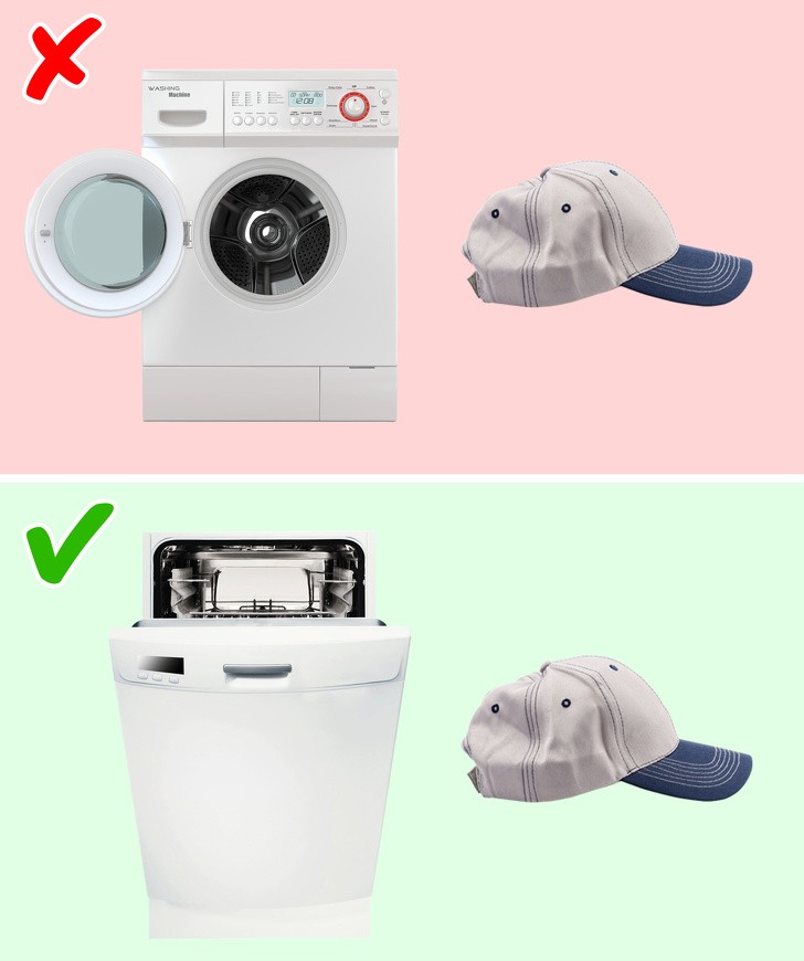 Để chiếc mũ của mình không bị biến dạng, bạn không nên để vào máy giặt. Giải pháp rất đơn giản là bạn có thể làm sạch nó bằng cách đặt vào kệ trên cùng của máy rửa chén.