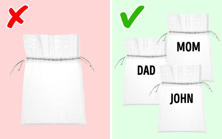 Bạn đã bao giờ gặp phải tình trạng bị thất lạc mất một chiếc tất sau mỗi lần giặt đồ? Để tránh những đồ nhỏ như: tất, nội y "biến mất", bạn có thể sắm những chiếc túi nhỏ bằng vải để đựng đồ từng thành viên trong gia đình trước khi cho vào máy giặt.