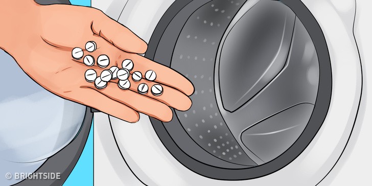 3. Cho một số viên thuốc aspirin vào máy giặt có thể làm sạch những vết ố vàng trên quần áo trắng