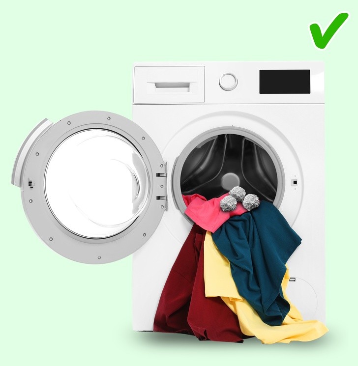 8. Đặt vài quả bóng thiếc vào máy giặt