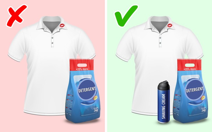 Để loại bỏ vết bẩn bị dính từ đồ trang điểm bạn chỉ cần thoa kem cạo râu lên, rồi giặt như bình thường.