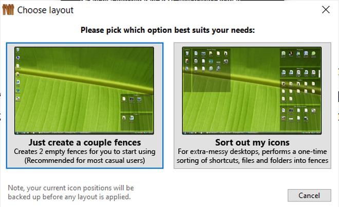 Fences là phần mềm miễn phí được ra đời để giúp người dùng xử lý vấn đề này một cách triệt để. Fences sẽ tự động nhóm các biểu tượng có trên desktop thành từng nhóm khác nhau, theo từng chủ đề.