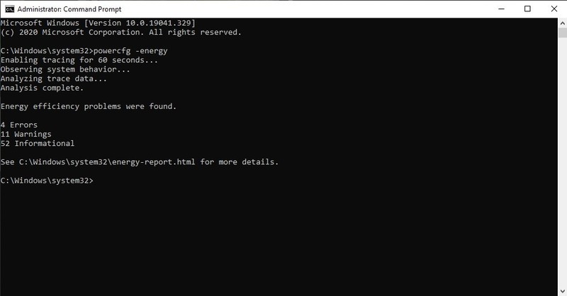 Bước 2: Lúc này cửa sổ CMD sẽ được mở, bạn nhập lệnh powercfg –energy vào cửa sổ CMD sau đó nhấn nút Enter .