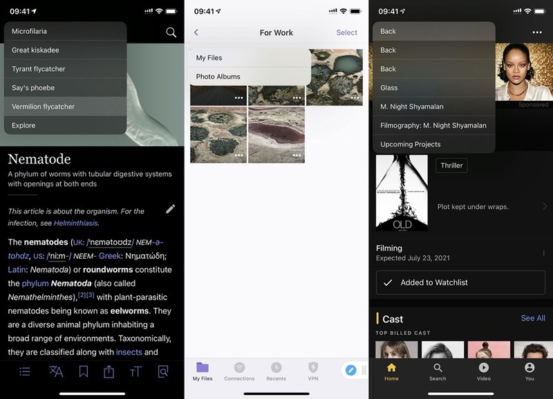 Ngoài ra, Apple cho phép các nhà phát triển sử dụng tính năng này trên các ứng dụng của họ. Hiện tại, một số ứng dụng bên thứ ba như IMDb, Documents by Readdle, và Wikipedia đã hỗ trợ cử chỉ mới. Số lượng ứng dụng tương thích với tính năng này chắc chắn ngày càng nhiều hơn trong tương lai.