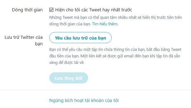 Click chọn Yêu cầu lưu trữ của bạn để nhận link tải về dữ liệu Twitter