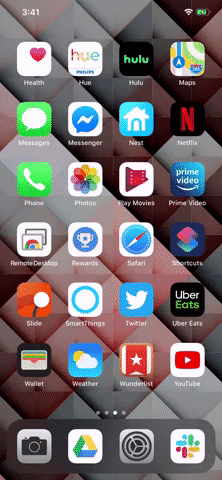 Bây giờ, bạn quay về màn hình chính, sau đó mở Control Center (Trung tâm điều khiển) bằng cách vuốt xuống dưới từ góc trên bên phải những thiết bị không có nút Home, hoặc vuốt lên trên từ cạnh dưới màn hình những thiết bị có nút Home.