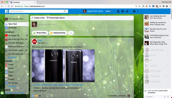 Giao diện Facebook đã được thêm ảnh nền, thay đổi font chữ... Ảnh: MINH HOÀNG
