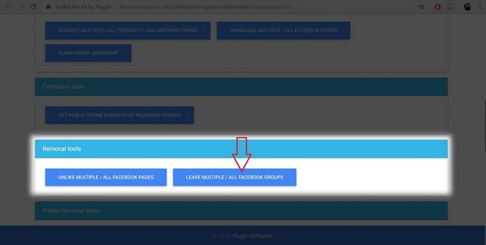 Tại mục Removal tools, bạn hãy nhấn vào mục LEAVE MULTIPLE / ALL FACEBOOK GROUP.