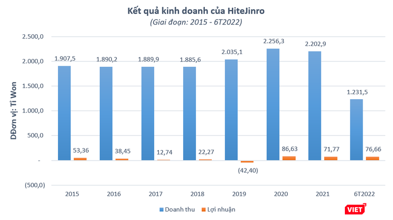 Lũy kế 6 tháng đầu năm 2022, doanh thu và lợi nhuận sau thuế của HiteJinro lần lượt đạt 1.231,5 tỉ won (tương đương 21.654 tỉ đồng) và 76,66 tỉ won (tương đương 1.348 tỉ đồng), tăng 11,9% và 45,1% so với cùng kỳ năm trước.
