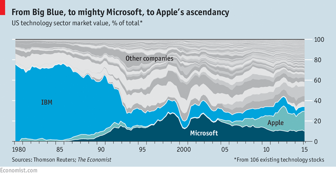 Thị phần thị trường công nghệ Mỹ biến đổi qua các năm.