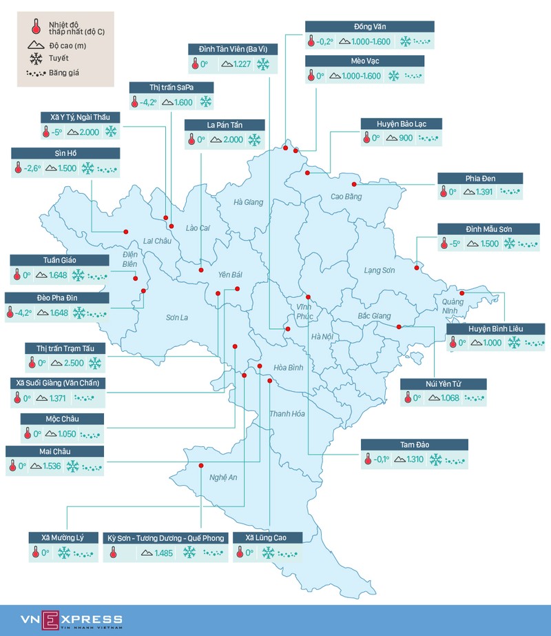Miền Bắc có hơn 20 địa điểm xuất hiện băng tuyết