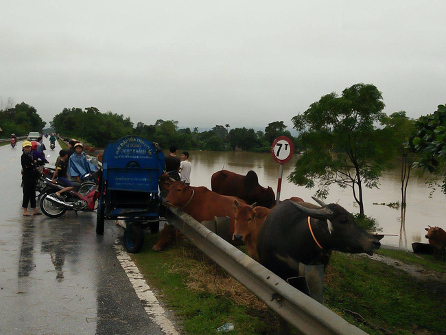 Ngoài quốc lộ 1A, đường Hồ Chí Minh đoạn từ Km909 đến Km912 đoạn qua xã Thương Hóa, huyện Minh Hóa (Quảng Bình) cũng bị ngập. Nếu lượng mưa giảm thì tối 15-10 xe có thể đi qua được đoạn này.