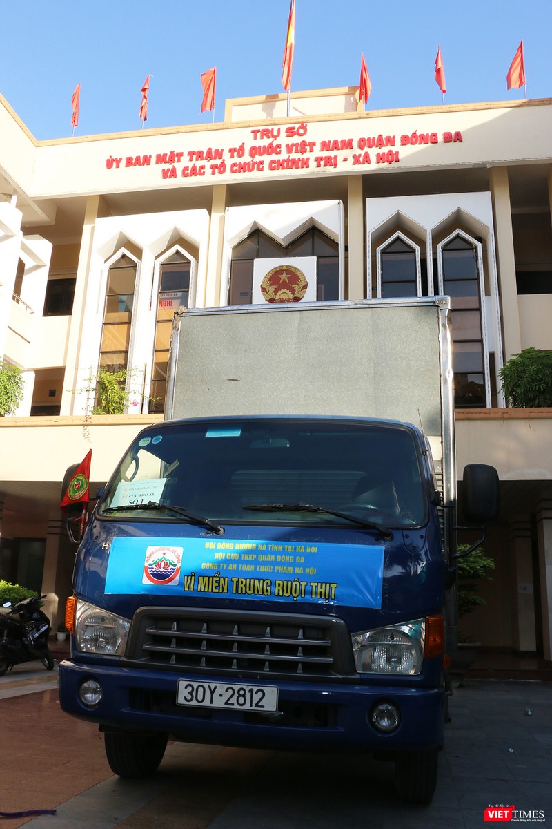 Hàng đống những chiếc thùng carton được xếp ngay ngắn trong khuôn viên trụ sở đã nhanh chóng được xếp vào thùng xe tải. Ngoài sân vẫn còn những bọc ni lông lớn chứa quần áo, nhu yếu phẩm được các tình nguyện viên mở ra phân loại, sắp xếp. Thỉnh thoảng lại thấy một chuyến xe ba gác hay xe tải nhỏ chở thêm hàng hóa đến “tiếp viện”.